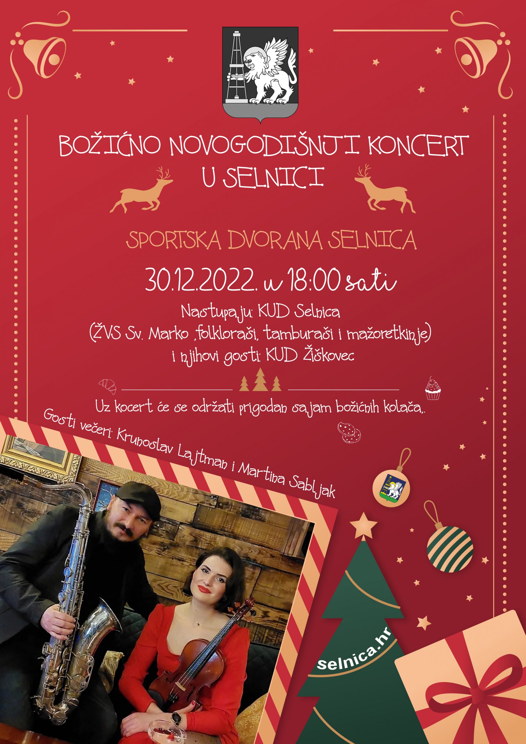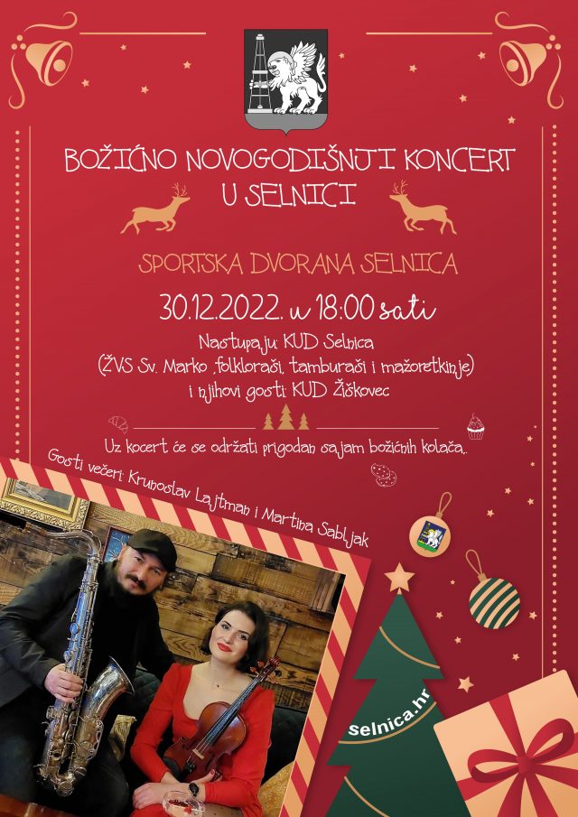 Općina Selnica poziva sve na božićno novogodišnji koncert u Selnici, 30.12.2022. u školskoj sportskoj dvorani koji će početi u 18 sati.