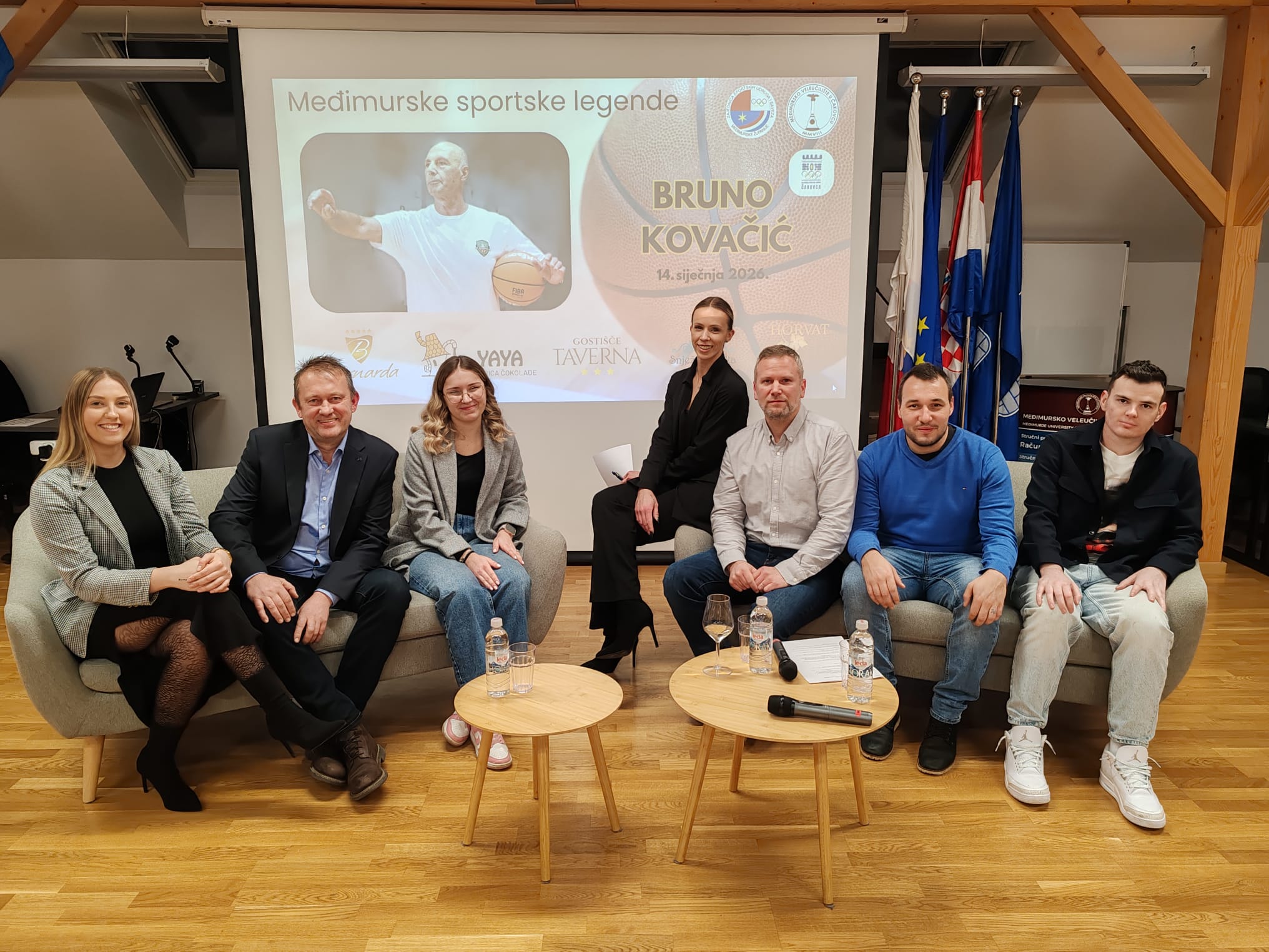 U srijedu, 14. siječnja 2026. godine, u dvorani Centra održivog razvoja Međimurskog veleučilišta u Čakovcu održana je tribina iz ciklusa Međimurske sportske legende. Gost tribine bio je Bruno Kovačić, dugogodišnji košarkaški trener i istaknuti sportski djelatnik. Tribinu su organizirali studenti 3. godine prijediplomskog stručnog studija Menadžment turizma i sporta – Dea Šipek, Elena Jurinjak, Hrvoje Vuk, Mario Horg, Bruno Tkalec i Viktorija Pavliček pod vodstvom dr.sc. Andrijane Kos Kavran, a službeno je otvorio prodekan za poslovanje i razvoj dr.sc. Tibor Rodiger, pozdravivši sve prisutne.