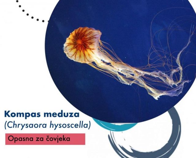 Centar za invazivne vrste je izvijestio kako su ovih dan primili veliki broj dojava o pojavi meduza diljem Jadrana. Najvećim dijelom to se odnosi na meduzu morska pluća R. pulmo koja nije opasna za čovjeka. No, česta je pojava i kompas meduze C. hysoscella koja može u dodiru s kožom može opeći i zato treba izbjegavati svaki kontakt s njima. Posljednja dojava bilježi njihovo pojavljivanje u blizini obale u Špadićima kraj Poreča.Chrysaora hysoscella, poznata kao kompas meduza, vrsta je koja je živi u obalnim vodama Atlantskog oceana i Mediteranskog mora. Pojavljuje se i u blizini obala Ujedinjenog Kraljevstva, Irske i Turske. Karakterizira ju žuto-smeđi klobuk koji podsjeća na kompas a može narasti do 30 centimetara u promjeru, a lovke do 1 metra duljine. Ima 24 lovke koje su podijeljenje u tri grupe po 8. Gibaju se uglavnom pomoću morskih struja u gornjem stupcu morske vode. Iako se u proljetnim mjesecima mogu javiti u nešto većem broju, mali broj jedinki doživi spolnu zrelost i preživi do ljeta.