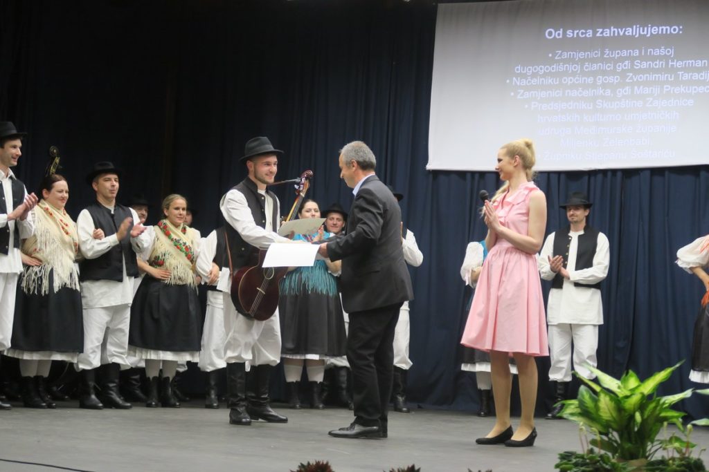 Predsjednik Skupštine Zajednice hrvatskih kulturno umjetničkih udruga Međimurske županije Miljenko Zelenbaba uručio je diplome za kontinuirani rad na očuvanju kulturne baštine Karlu Čehu, Luki Čehu, Petri Braniša, Mateji Kralj, Kruni Kanižaju, Kseniji Kramar, Petru Janušiću, Darinki Premuš, Alojzu Kozjaku i Dragutinu Taradiju.