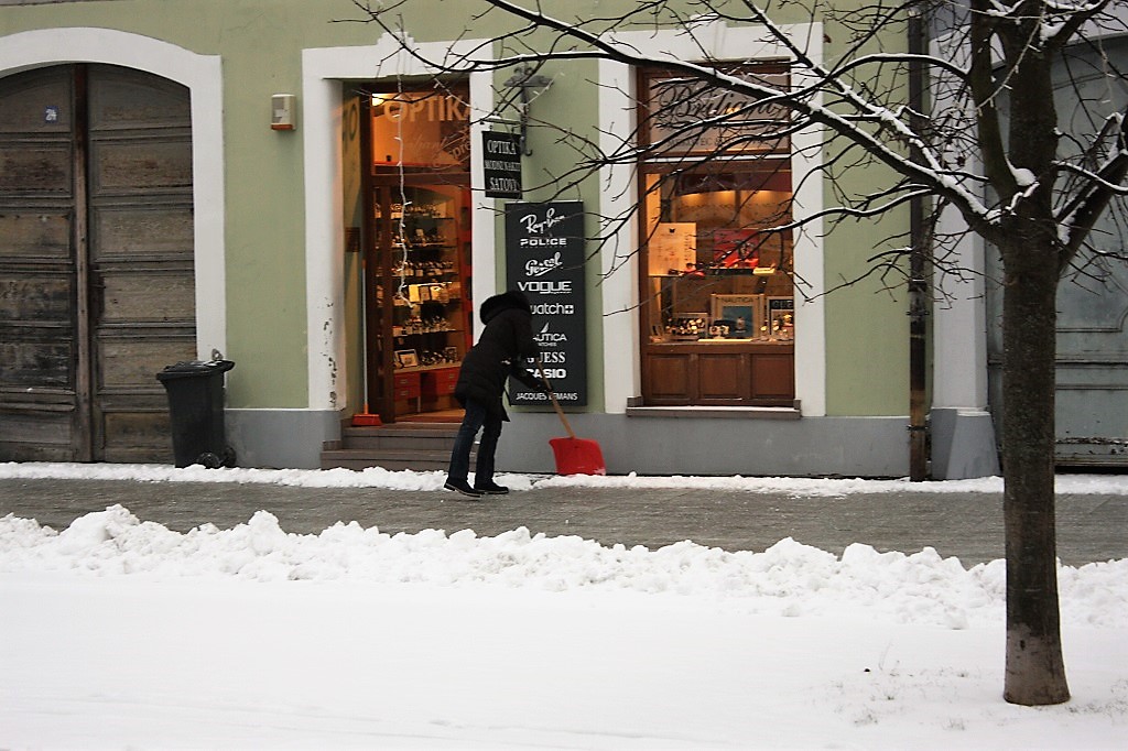 Petero djelatnika GKP Čakom ručno lopatama uklanja snijeg u središtu grada, posebno površine oko Gradske tržnice te staze prema Županijskoj bolnici Čakovec. Do 8 sati ujutro utrošeno je 27 tona soli.