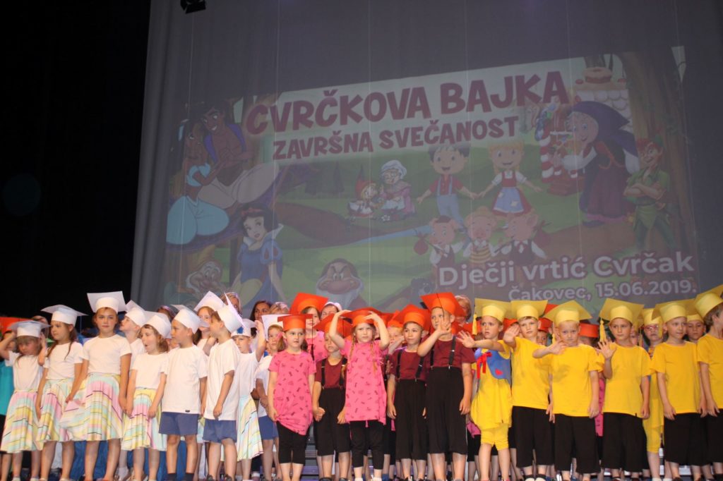 Ovoga puta, od vrtićkih se dana oprostilo 120 mališana Dječjeg vrtića Cvrčak, kako iz matičnog objekta, tako i iz podružnica Maslačak, Krijesnice, Stonoga i Pčelice. Šarolik program inspiriran najpoznatijim bajkama, pričama i animiranim filmovima, iz prepunog su gledališta pratili mnogobrojni roditelji, bake i djedovi.