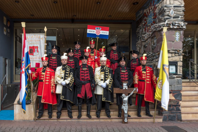 Među 800 hrvatskih hodočasnika koje je predvodio vojni biskup mons. Jure Bogdan, dok je zapovjednik hodočašća bio zapovjednik Hrvatskog ratnog zrakoplovstva brigadni general Mato Mikić, bili su i pripadnici Zrinske garde.