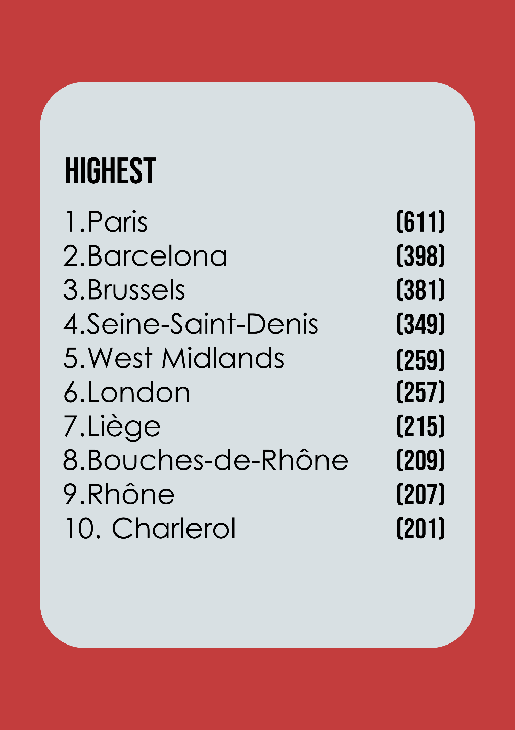 Preda podacima za 2023. godinu najveća stopa razbojstava zabilježena je u Parizu, Barceloni i Brusselsu. Eurostat je u ovom istraživanju usporedio broj prijavljenih razbojstava na 100.000 stanovnika i došao do ove poražavajuće statistike. Debelo ispred svih na prvom mjestu ove neslavne tablice nalazi se Pariz koji je u 2023. godini na 100.000 stanovnika imao prijavljenih 611 razbojstava. Zanimljivo je spomenuti kako se više od polovice prijavljenih razbojstava u Parizu odnosilo na nasilno otuđenje mobitela ili laptopa. Prvih 10 gradova možete vidjeti na sljedećem grafičkom prikazu, a neki od gradova mogli bi vas iznenaditi.