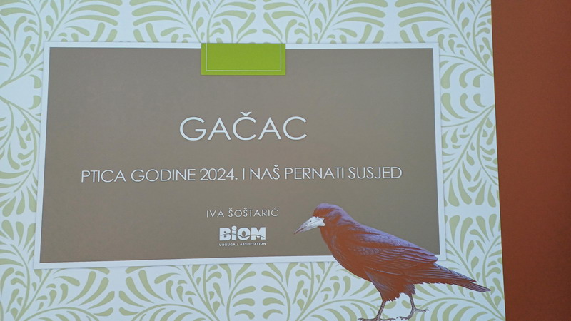 Predavanje GAČAC – Ptica godine 2024. i naš pernati susjed organizirala je Međimurska priroda – Javna ustanova za zaštitu prirode u suradnji s Udrugom BIOM. Predavač je bila ornitologinja Iva Šoštarić, a zanimljivosti iz suživota s pticama iz porodice vrana došla je čuti brojna publika u multimedijalnoj dvorani Riznice Međimurja u Čakovcu.