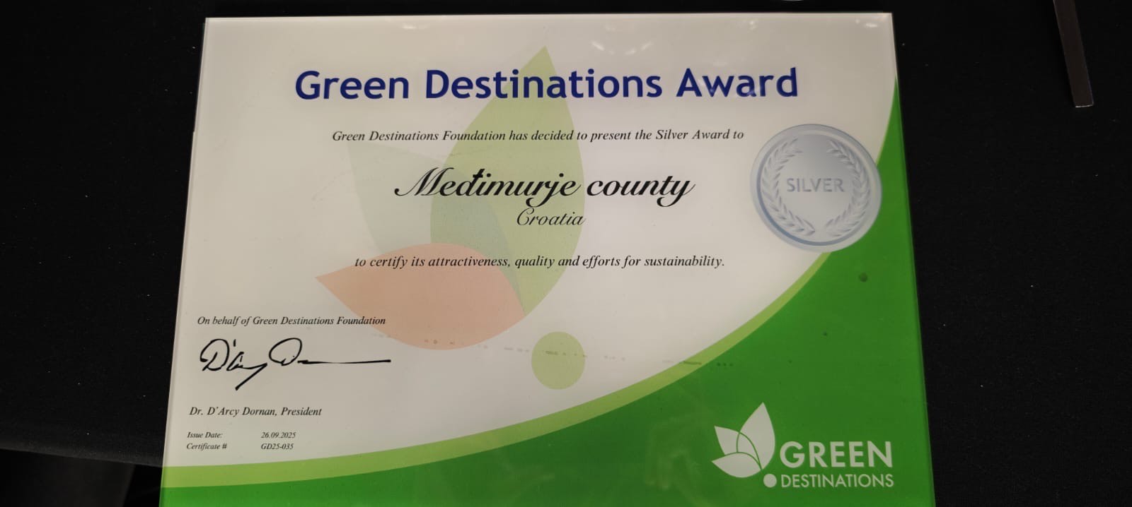 Međimurje je na međunarodnoj turističkoj sceni iznova potvrdilo svoj status zelene regije posvećene ekološkom i održivom turizmu. Na Green Destinations konferenciji u francuskom Montpellieru za svoju su predanost održivosti nagrađeni srebrom. Jer, i kad regija bude prepoznata kao zelena i održiva te uđe u prestižno Green Destinations društvo, a što je Međimurcima uspjelo prvima u Hrvatskoj 2023. godine, taj se status redovito preispituje jer nije dovoljno postati održiv, treba tu održivost kontinuirano njegovati i razvijati. Zato je proces recertifikacije zahtjevniji od dobivanja certifikata, od regije se očekuje da tijekom dvogodišnjeg perioda odradi dodatne iskorake, a što su Međimurci uspješno i učinili.