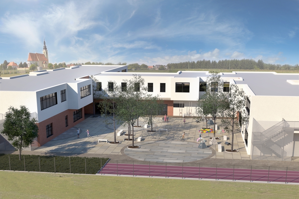 Zgrada, čije će se konture uskoro početi nazirati, bit će visoko energetski učinkovita te pružati vrhunske uvjete za nastavu i boravak. Okruživat će je park i vanjski sportski tereni, a srce kompleksa krasit će školski trg.