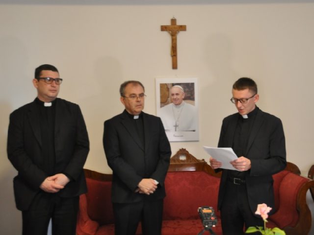 Vijest o imenovanju dosadašnjeg rektora Papinskog hrvatskog zavoda sv. Jeronima u Rimu msgr. Bože Radoša novim varaždinskim biskupom objavljena je jučer u prostorijama Zavoda sv. Jeronima. Na objavi su sudjelovali hrvatski svećenici na službi u Rimu. Obavijest o imenovanju zajedno sa životopisom novoga biskupa pročitao je Marko Đurin, vicerektor Zavoda, svećenik Varaždinske biskupije. On je također pročitao i pismo čestitke dosadašnjeg varaždinskog biskupa msgr. Josipa Mrzljaka upućeno biskupu Radošu prigodom imenovanja te izrazio čestitke u ime članova Zavoda. Nakon toga, svima se nazočnima obratio i novoimenovani biskup Radoš koji je istaknuo kako ga je je vijest o imenovanju zatekla dok se nalazio pred crkvom Sv. Petar u Okovima u Rimu.