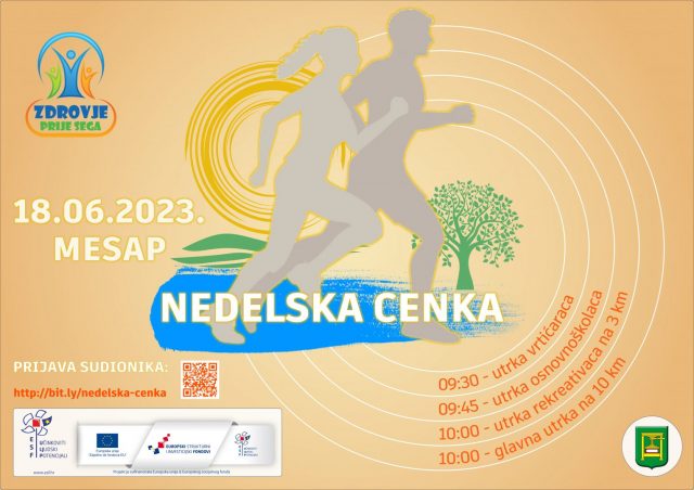 Općina Nedelišće i Atletski klub Nedelišće pozivaju Vas na utrku „Nedelska cenka“. Utrka će se održati u nedjelju 18.lipnja 2023. godine u Nedelišću. Na utrci mogu sudjelovati svi građani koji se prijave te djeca predškolske i školske dobi na dječjoj utrci.