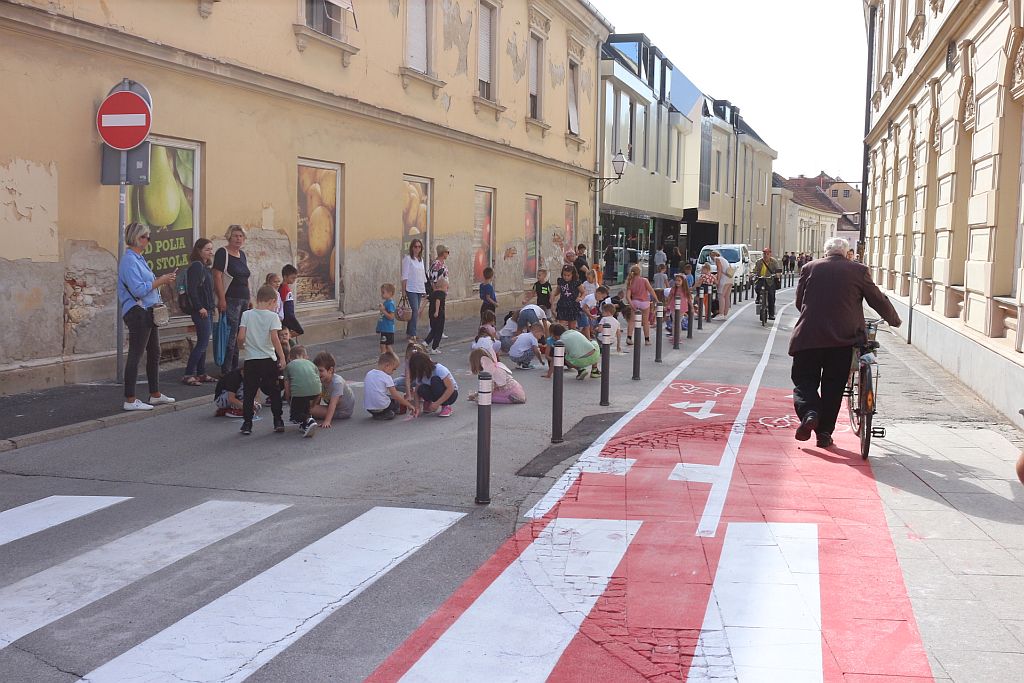 Obilježavajući Dan bez automobila, u prijepodnevnim satima bile su zatvorene Ulica Augusta Šenoe i Ulica Ivana Kukuljevića Sakcinskog. Suradnica i kineziolog Zajednice sportskih udruga Grada Varaždina su s djecom Dječjeg vrtića Varaždin na ulici provodili razne sportske aktivnosti i igre, a djeca su kredama oslikavala javnu prometnu površinu uputivši i na taj način uputili poruku da javne površine i ulice ne pripadaju samo vlasnicima automobila već i svim drugim kategorijama građana, ponajprije djeci, pješacima i biciklistima.