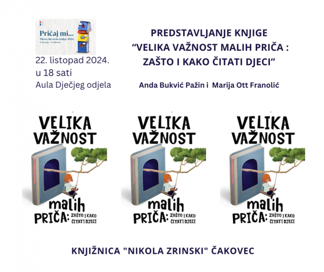 Knjižnice na predstavljanje knjige „Velika važnost malih priča : zašto i kako čitati djeci” autorica Ande Bukvić Pažin i Marije Ott Franolić.