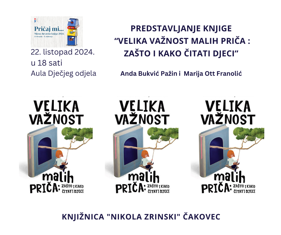 Iz čakovečke knjižnice “Nikola Zrinski” pozivaju Vas u utorak 22. 10. 2024. u 18 sati u Aulu Dječjeg odjela