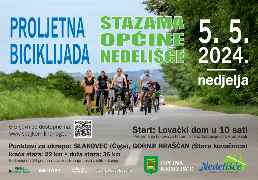 Turistička zajednica Općine Nedelišće poziva Vas na još jedno izdanje biciklijade „Stazama Općine Nedelišće“. Svi željni druženja u prirodi i rekreacije doći će na svoje u nedjelju, 5. svibnja 2024. godine.