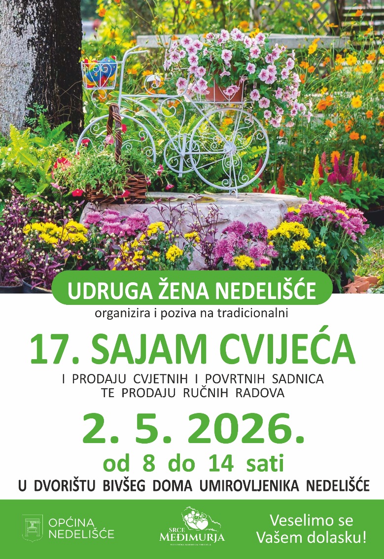 A u subotu 2. svibnja već od 8h Udruga žena Nedelišća priprema tradicionalnu Izložbu cvijeća u dvorištu starog vrtića Nedelišće.