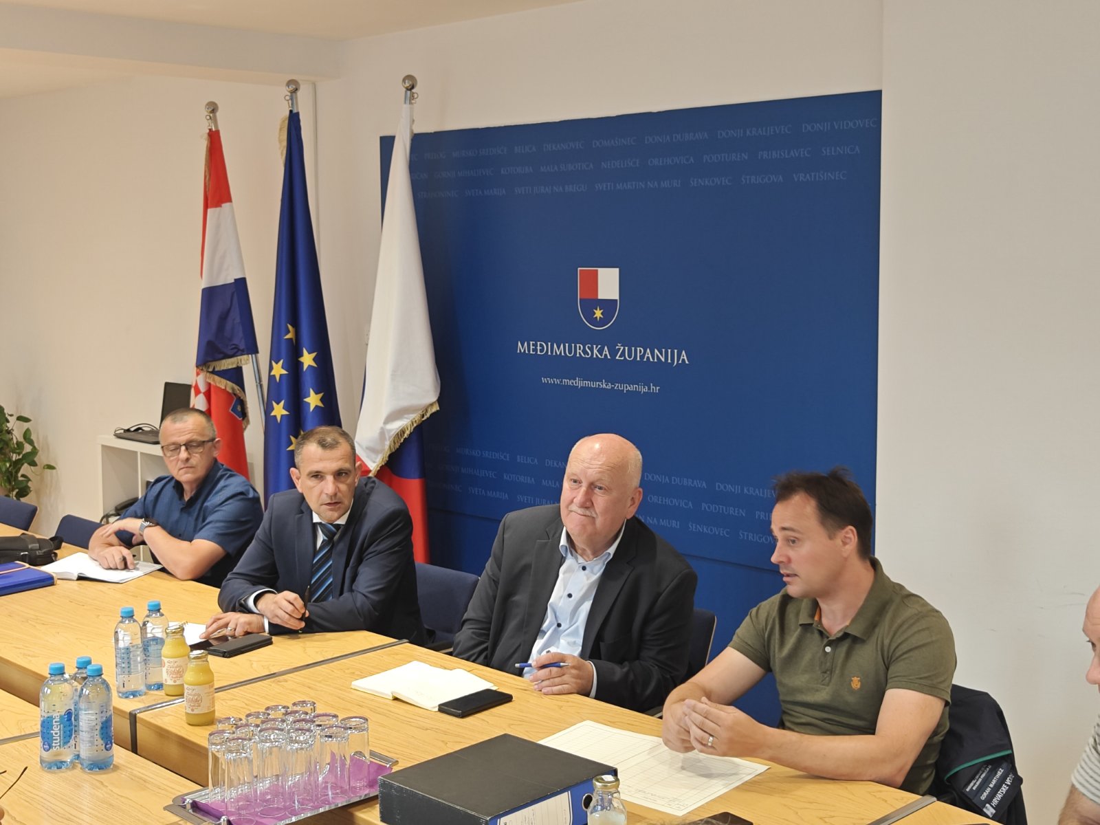 Obzirom na moguće obilnije oborine tijekom 4., 5. i 6. kolovoza 2023. godine (petak, subota i nedjelja), te situaciju s vodostajima, bujičnim poplavama u Sloveniji i Austriji i činjenicom da se Međimurje nalazi između rijeka Mure i Drave, župan Međimurske županije Matija Posavec i zamjenik župana Josip Grivec, ujedno i načelnik Stožera civilne zaštite Međimurske županije, održali su radni sastanak s predstavnicima operativnih snaga (Hrvatske vode, HEP Proizvodnja, Služba civilne zaštite Čakovec, Vatrogasna zajednica Međimurske županije i HGSS – Stanica Čakovec).