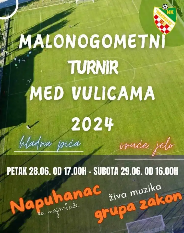 Nogometni klub Draškovec poziva na tradicionalno druženje Malonogometni turnir Med Vulicama 2024. Turnir će se održati u petak i subotu, 28. i 29. lipnja na igralištu u Draškovcu. U petak utakmice kreću od 17, a u subotu od 16 sat, uz „hladna pića“ i „vruće jelo“. Za glazbeni dio pobrinut će se sastav „Zakon“, a pripremljena su iznenađanja i za najmlađe.