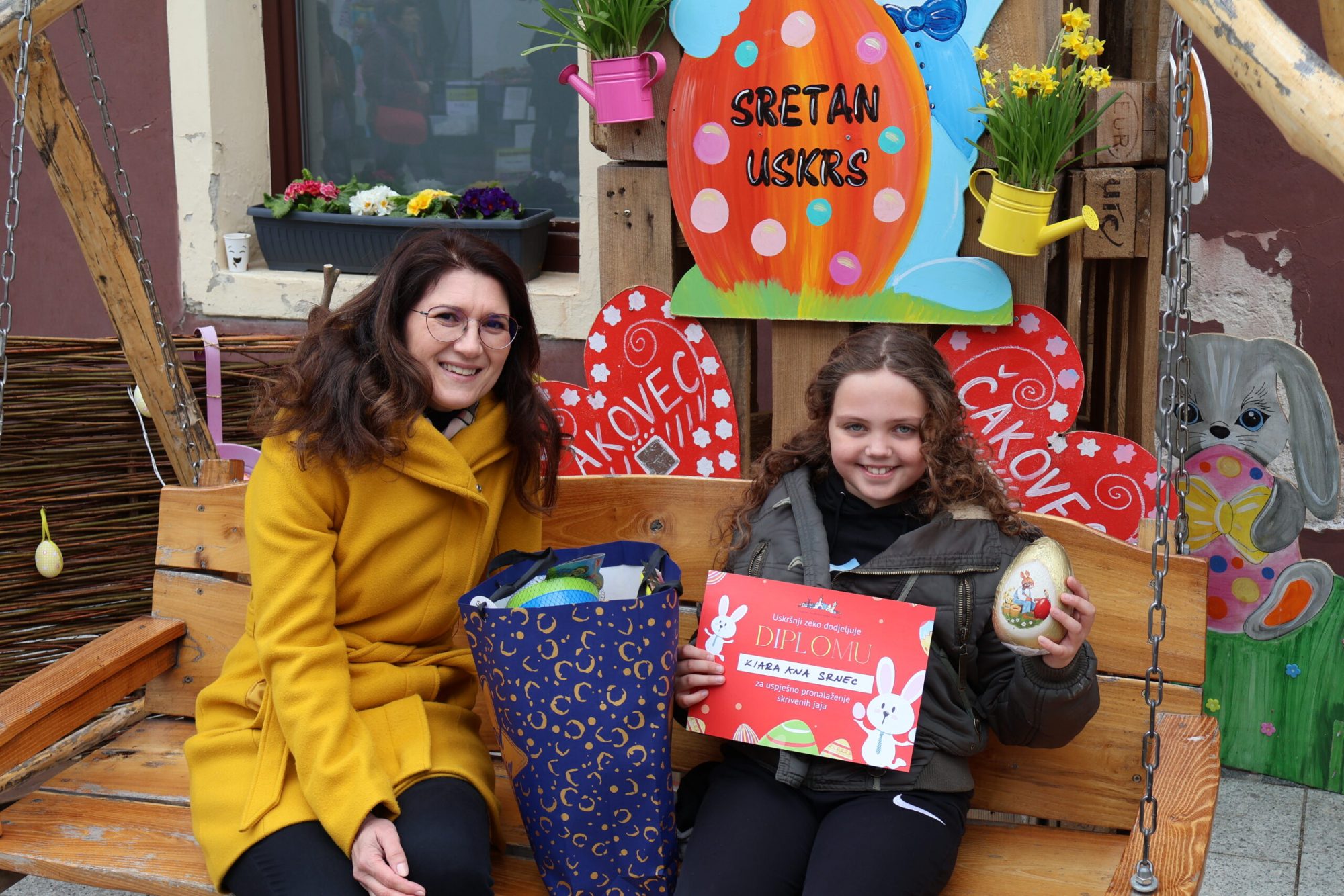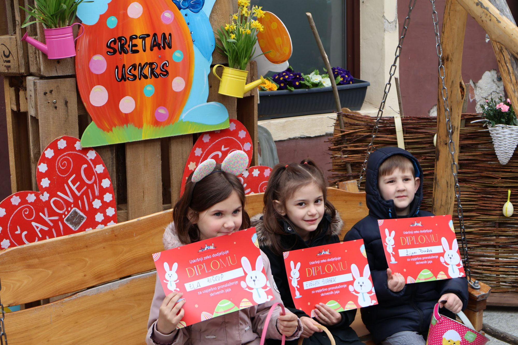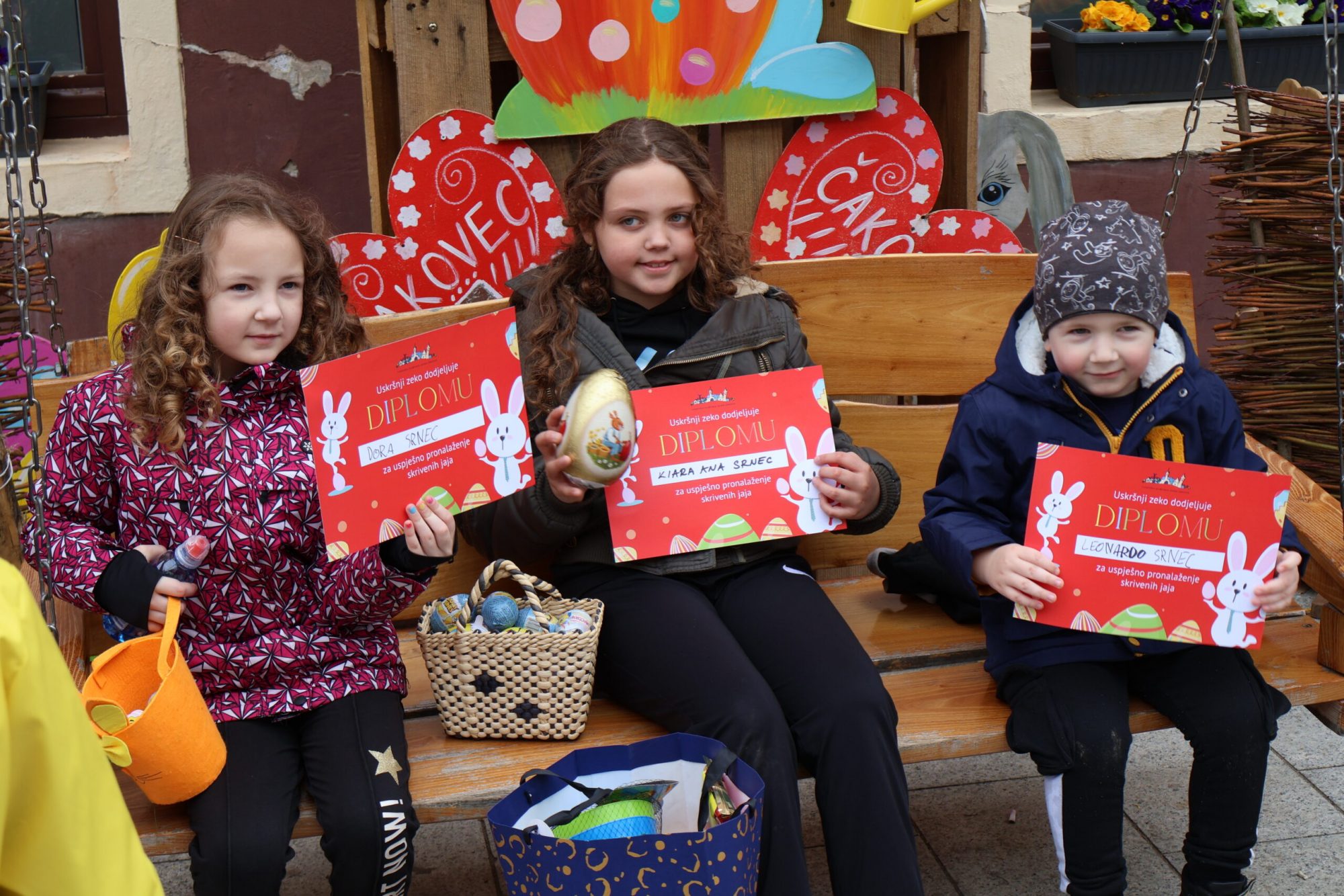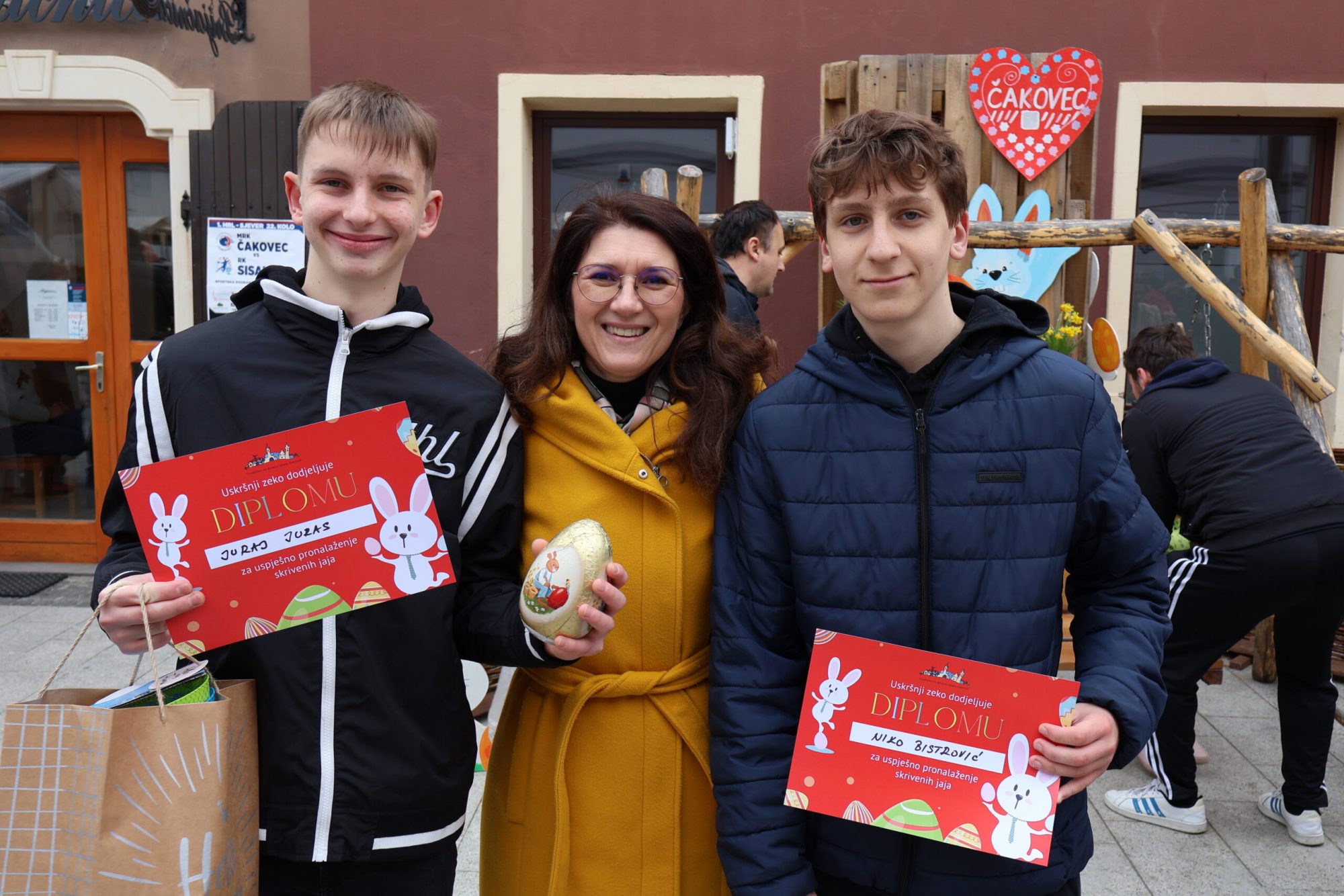 Uz veliki broj skrivenih uskrsnih čokoladnih jaja, među ostalim su se nalazila i tri zlatna jaja, koja su ove godine pronašli Kiara Ana Srnec, Jan Radiković te zajednički Juraj Juras i Niko Bistrović. Njima je osobno čestitala gradonačelnica Grada Čakovca Ljerka Cividini te im dodijelila diplome i prigodne poklone. No osim njih i ostali sudionici u prostorima Turističke zajednice grada Čakovca primili su svoje zaslužene diplome uskrsnog zeca za izniman trud, ali i utješne nagrade u povodu Uskrsa.